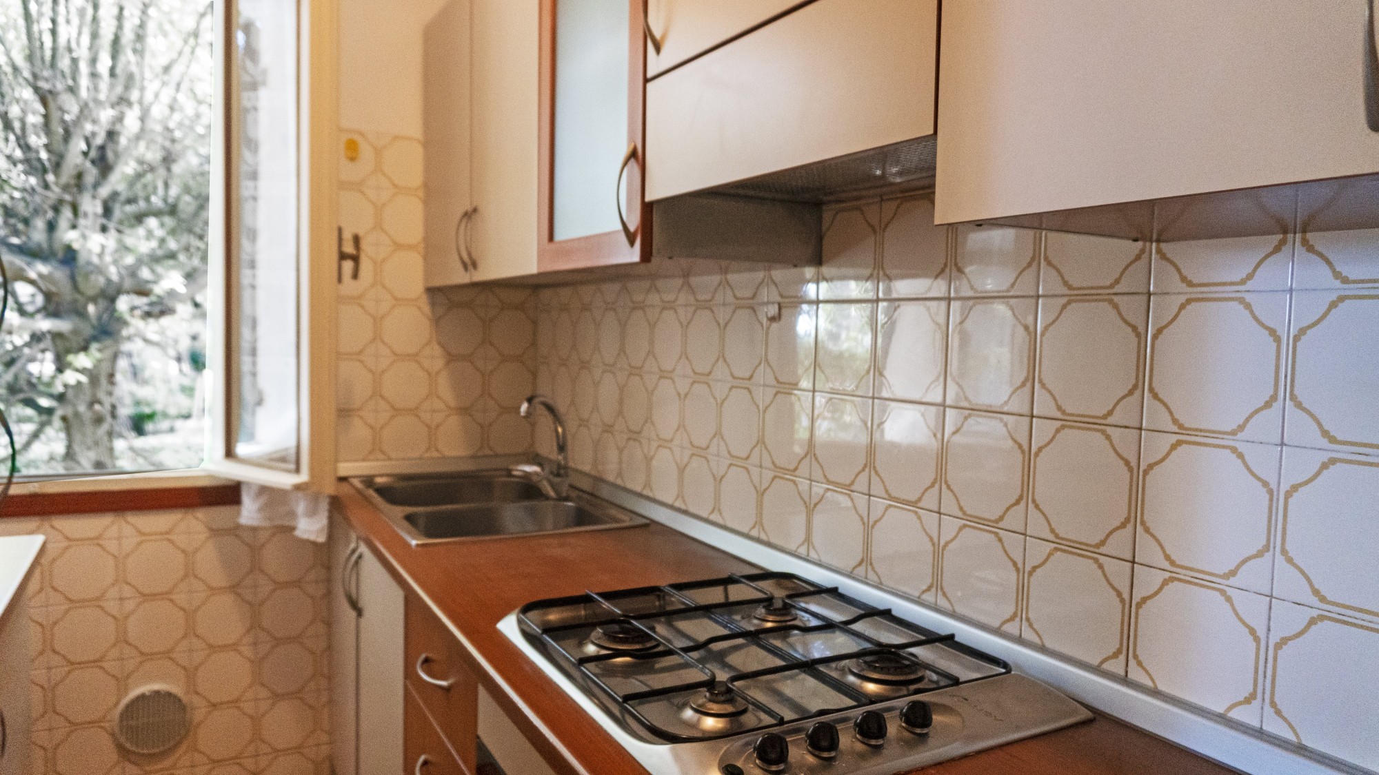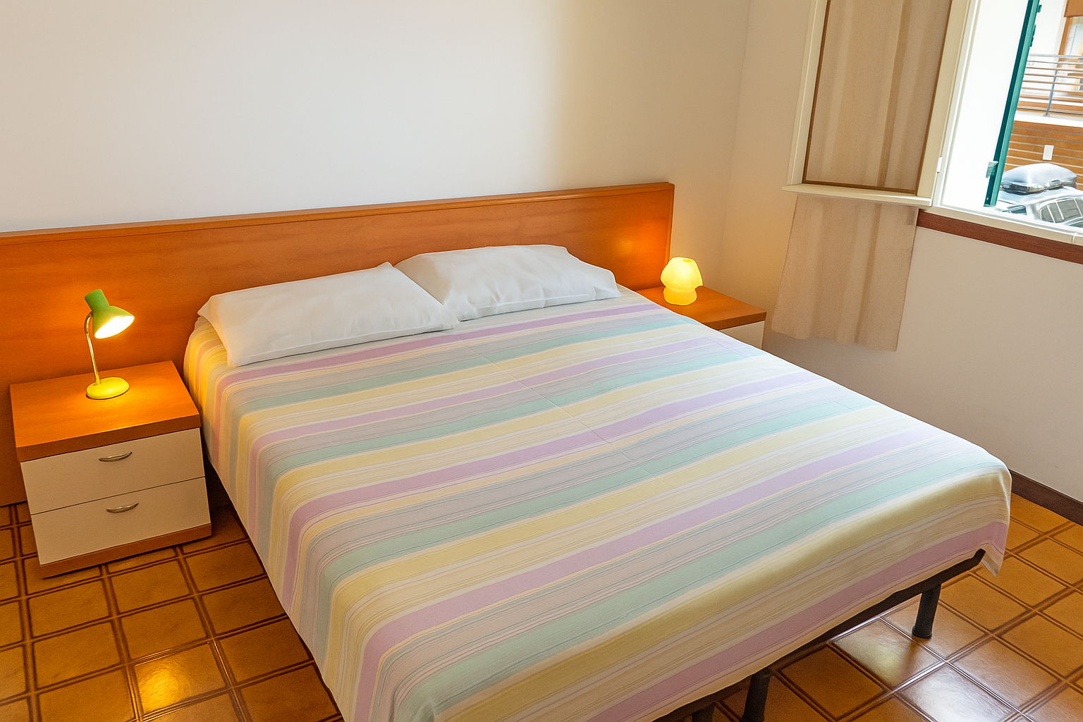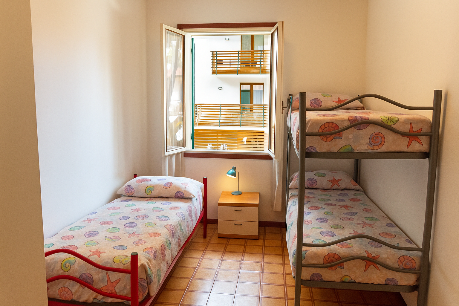 La villetta è composta da quattro unità abitative, due al piano terra e due al piano primo, ed è situata in una zona tranquilla e immersa nel verde. L’appartamento al piano primo è dotato di un confortevole soggiorno con un angolo cottura completamente attrezzato per poter cucinare gustosi piatti in tutta comodità, una camera matrimoniale, una camera con un letto a castello e un letto singolo, e un bagno con box doccia.